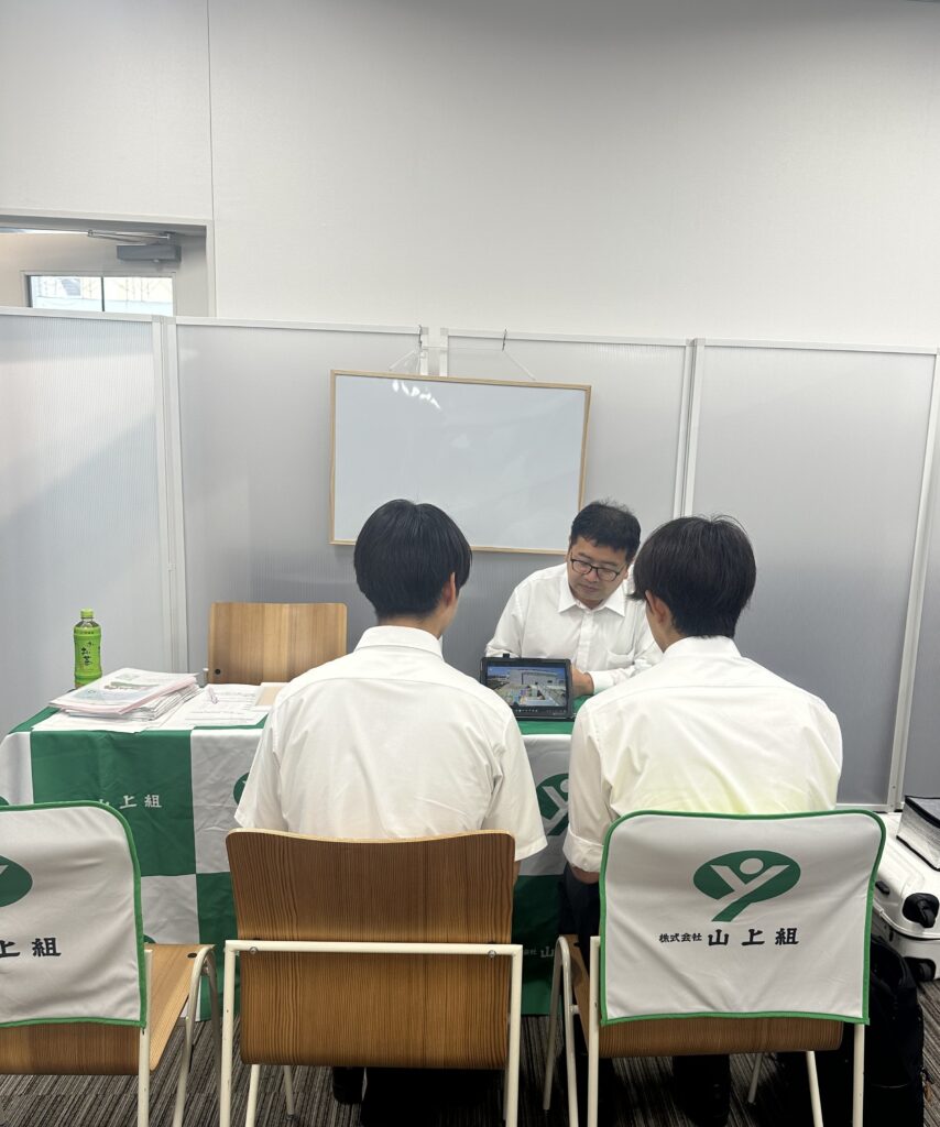 多数の建設会社がブースを出展している中で、山上組のブースにお越しいただいた学生の皆様、ありがとうございました。